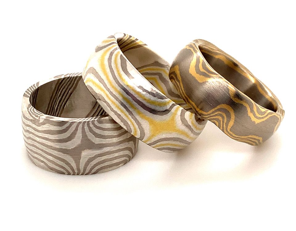 Mokume Gane, eine alte japanische Schmiedetechnik, begeistert uns. Viele spannende Muster und Farbkombinationen sind möglich. Ob geometrisch oder organisch, lassen Sie sich verzaubern und wählen Sie Ihr Lieblingsmuster aus. Durch die Kombination der verschiedenen Metalle in Schichten entstehen ausschließlich Unikate, die so unverwechselbar wie Ihr Fingerabdruck sind.
