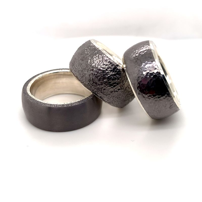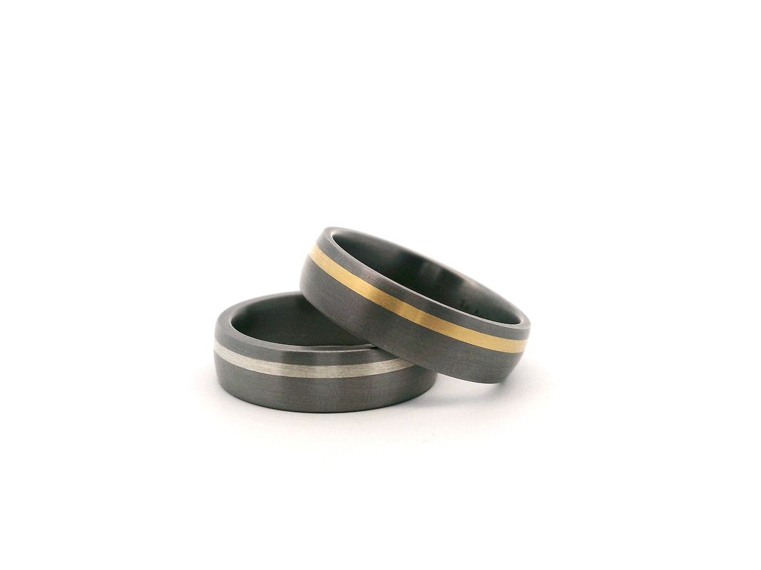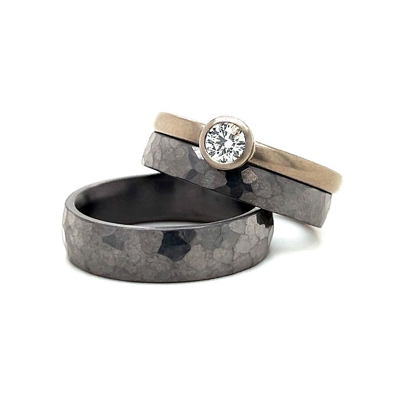 Tantal, das fast schwarze Metall hat uns in seinen Bann gezogen. Rustikale, derbe geschmiedete Ringe, auch filigrane oder klassische Kombinationen ermöglichen schöne Farbkontraste. Sprechen Sie uns einfach an.